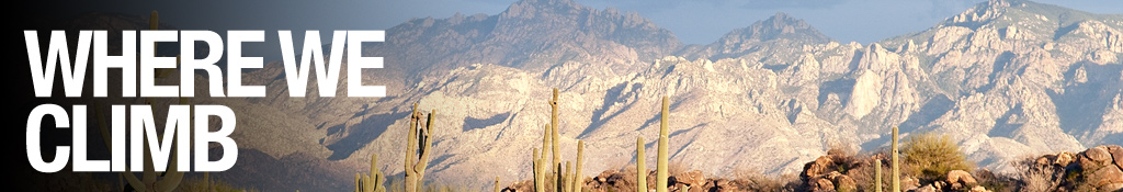 Our closest and most accessible climbing lies on Mt. Lemmon, just NE of Tucson.  This world class climbing location is home to thousands of  routes suitable for the novice to the experienced climber.  Along Mt. Lemmon highway, the scenic drive takes one from low desert to forested mountains at over 9,000 feet.  The abundance and quality of the climbing makes this our most popular destination.